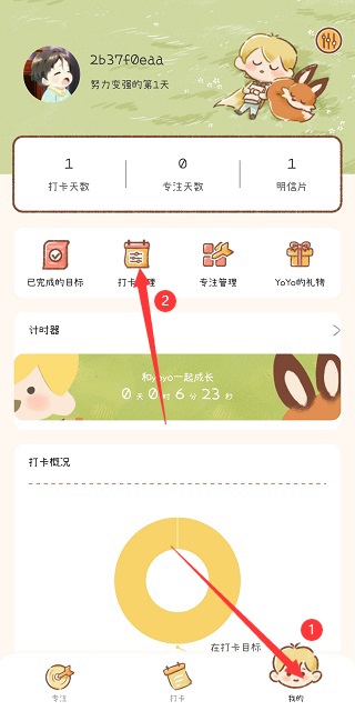 1、首先打开yoyo日常,您会默认进入到打卡界面。
