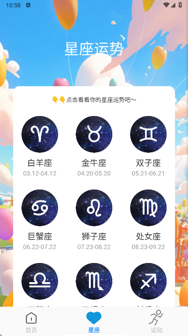 2、找到自己的星座,进入查看详情即可