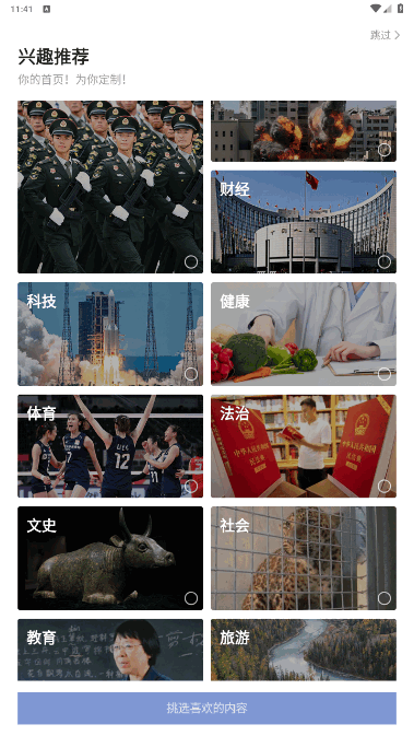 3、选择自己喜欢的内容,也可以直接跳过进入主界面