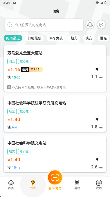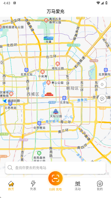 1、在本站下载安装万马爱充app打开进入首页,在这里您可以查找要去的充电站