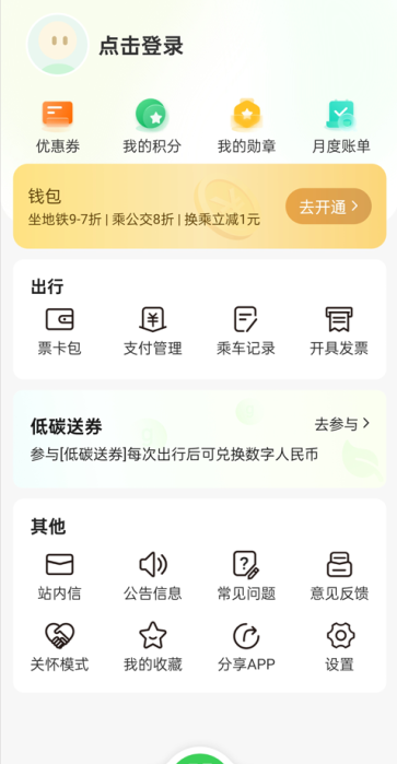 1、下载安装济南地铁app,注册并登陆,可以看到有首页和个人中心两个板块;