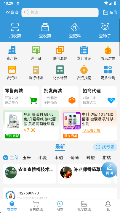 这是一款农资产品信息查询工具,可以查询农药登记证号、肥料登记证号/备案号、种子审定编号、农药生产许可证、经营许可证号等,数据来源于官方数据库,为用户提供全面、可靠、透明的数据信息。