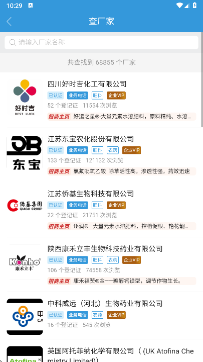 2、点击查厂家,可以浏览到厂家详细信息