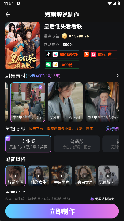 【图生视频】:目前您可以使用APP端通过上传图片开始制作,多种主题风格供您选择,只需1分钟就能助您在AI的世界里起舞!