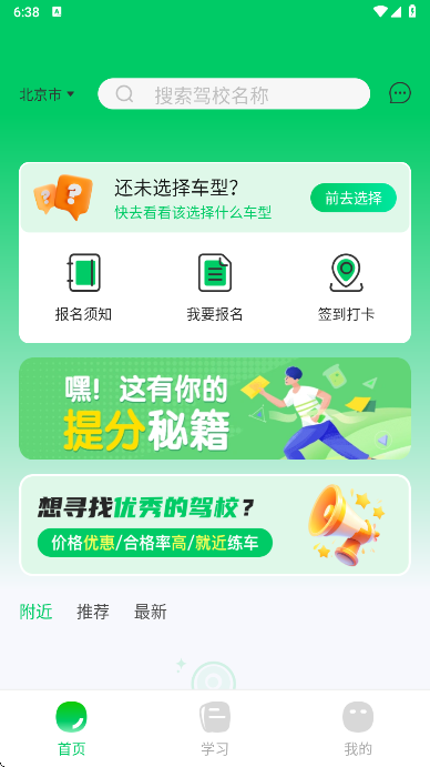 提供了找驾校服务,让学车用户可以通过软件快速查找周边驾校。
