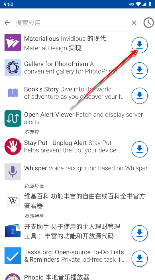 5.搜索出自己想要安装的应用后点击右边的下载按钮