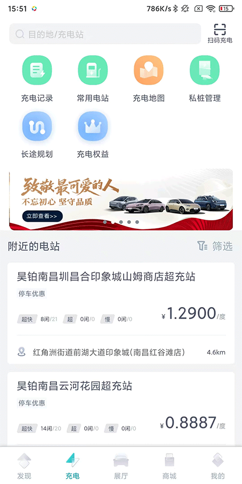 2、充电:筛选附近电站,一键扫码充电,充电记录、常用电站、充电地图等小工具帮您节省时间、提升效率;