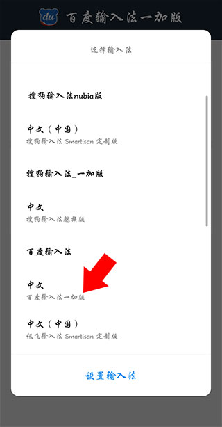 4、在弹出的界面中选择百度输入法一加版