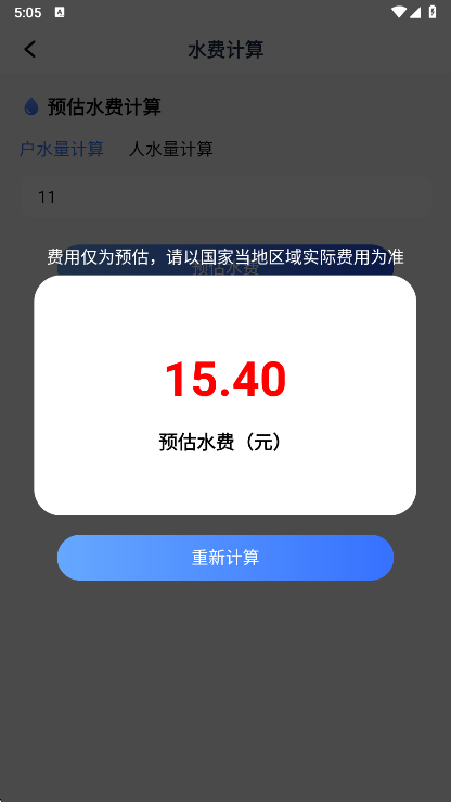 2、点击进入后,您可以输入用水量,然后点击预估水费