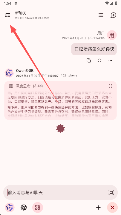 1. 启动RikkaHub应用,点选左上角按钮展开侧边栏