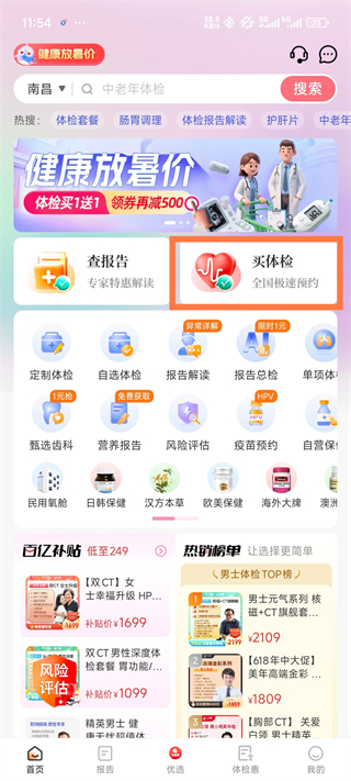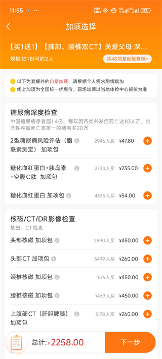 3、体检预约:任选时间门店,折扣加项包提前选。