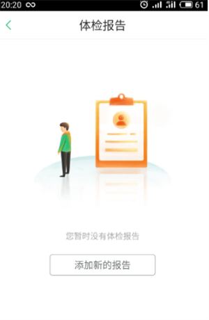 2、然后在体检报告页面上点击下面的“添加新的报告”。