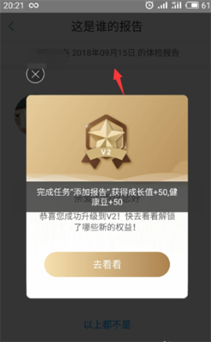 3、添加新的报告还能获得成长值和健康豆哦!