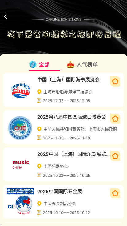 1、排期查询快捷方便:支持一键查询各地展会时间安排,实时更新排期数据,帮助用户快速掌握展览动态,高效规划参观行程。