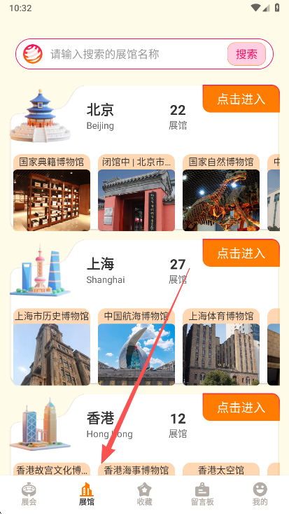 1、直接进入展馆专区,可以看到各城市展馆分类
