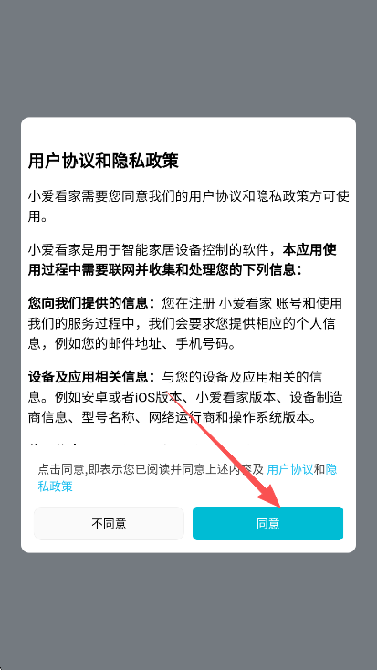 2、同意小爱看家app的用户协议