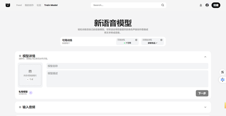 模型训练操作:在首页点击“训练模型”,上传干净音频数据,生成个性化语音模型。