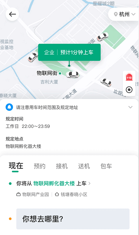 叫车时,员工需选择用车类型(如公务出行、加班用车等),并输入出发地、目的地等信息。