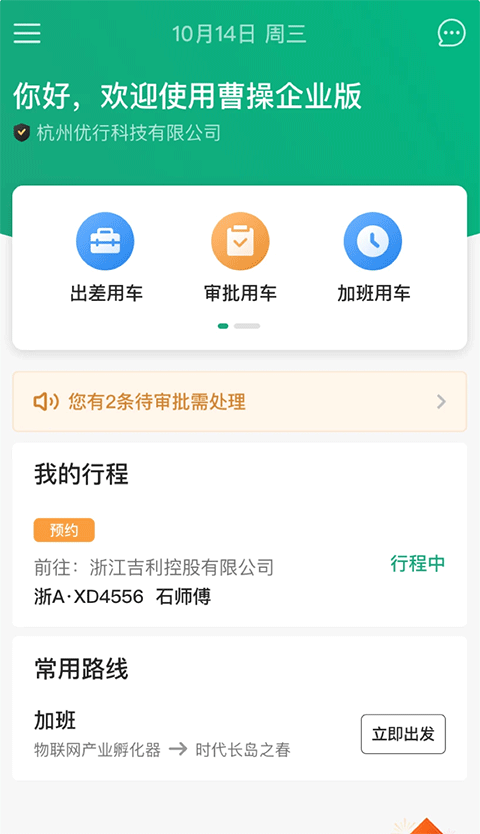 曹操企业版app是曹操出行专为政企客户打造的数字化出行管理平台,由原“绿色公务”品牌于2021年8月升级而来。该平台聚焦政企公务出行场景,通过新能源车型、全流程数字化管理工具及多终端接入方式,为企业提供一站式出行解决方案。其服务覆盖员工通勤、差旅接待、会议用车等场景,累计服务超7万家企业,覆盖1500万员工,合作客户包括阿里巴巴、腾讯、华为等头部企业,支持加班用车、差旅接送、活动用车、审批用车等场景,企业可灵活设置用车时间、地点、额度规则,防范公车私用,一键生成用车报表,支持按月统一开票,财务对账时间从每周2天缩短至2小时,提升效率,提供免费接口,支持与企业OA系统集成,员工无需额外下载应用,降低开发成本。