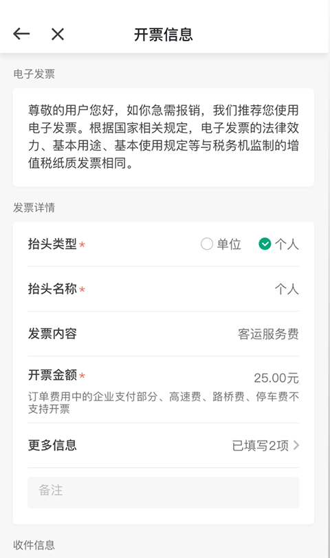 企业管理员可登录PC端用车管理平台,一键查看或导出用车报表,并按照企业充值金额或实际消费金额开具子发票或增值税专用发票。