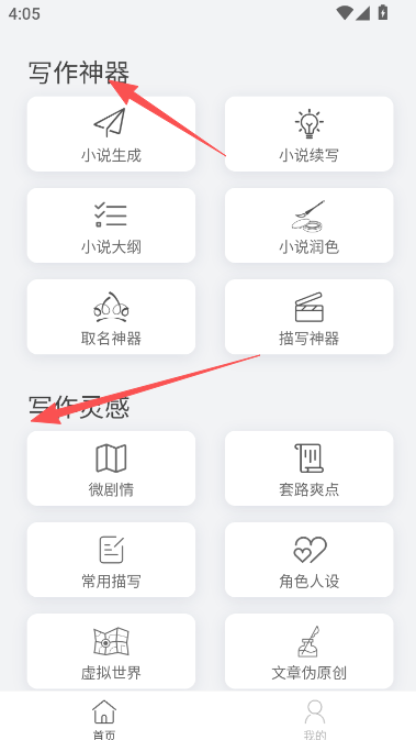 1、打开软件以后,点击写作神器页面或是写作灵感开始你的内容创作编辑。