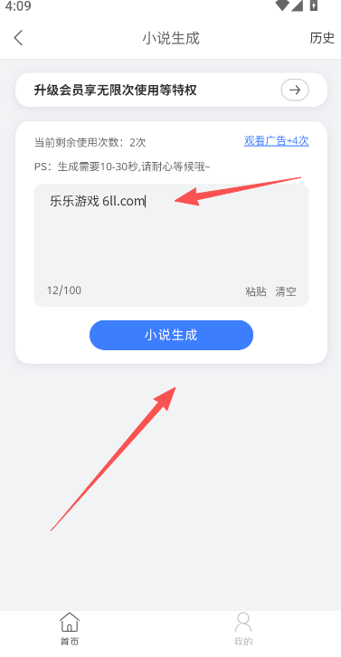 2、输入小说内容创作部分,点击开始生成。