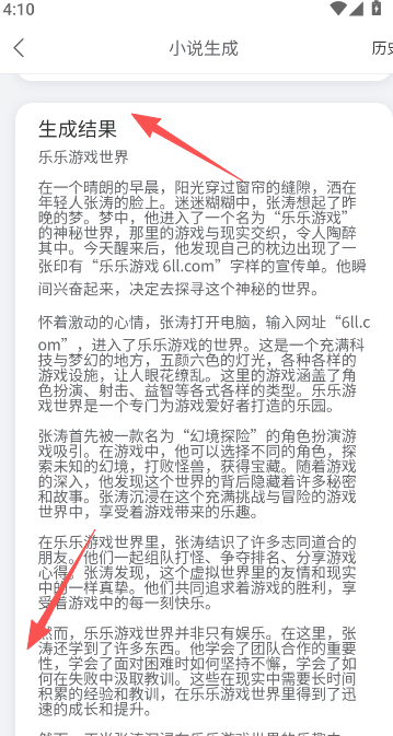 3、生成结果还是相当的有意思,短短几个字衍生出了一大段的小说内容,读下来也不会觉得枯燥和无聊。