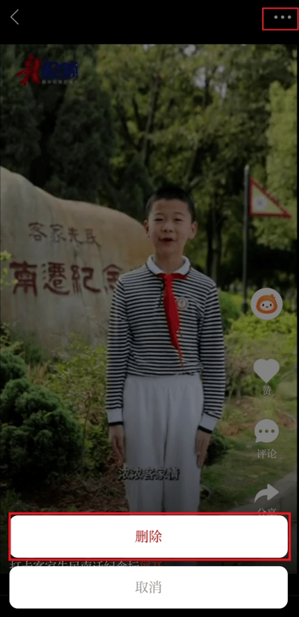 3、进入该视频预览页面,点击右上角“…”,页面出现“删除”按钮,点击“删除”即可。