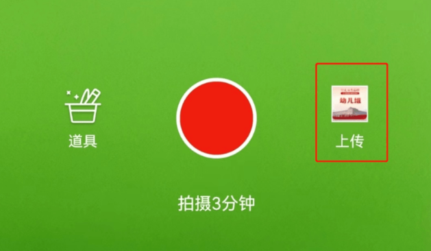 5、进入拍摄界面,要现场拍摄的可以直接点击页面底部的中间圆点开始拍摄。通过其他渠道制作好的视频则点击右边“上传”按钮,按照提示选择已制作好的视频上传即可。