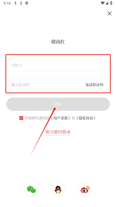 2、然后输入手机号和验证码,同意相关条款和协议,点击登录即可自动注册成功