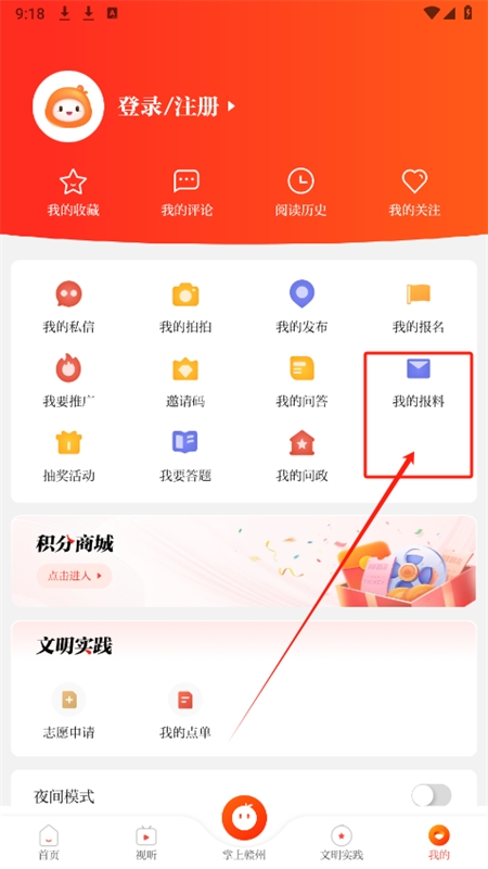 1、进入赣南红app我的,点击我的报料