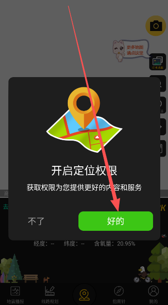 1、开启软件gps定位权限,点击进入使用功能界面。