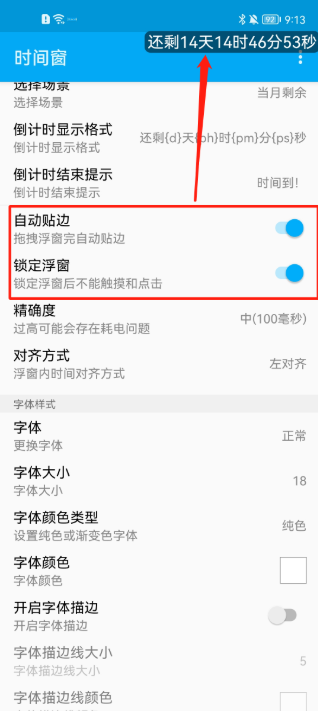 4、想要悬浮窗固定不动的话,点击自动贴边和锁定浮窗