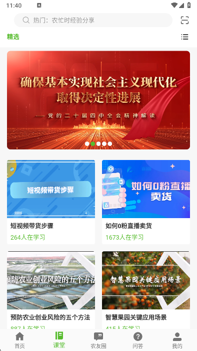 农民学院:专家、院士等线上教育课程。