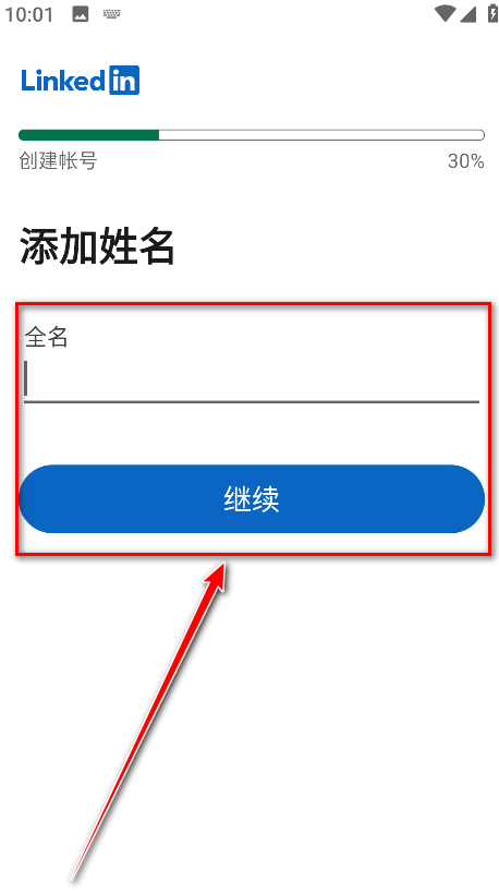 2.输入自己的姓名,然后点击继续。