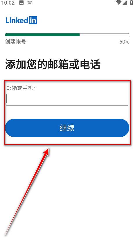 3.输入自己的邮箱或者手机号码,然后点击继续。