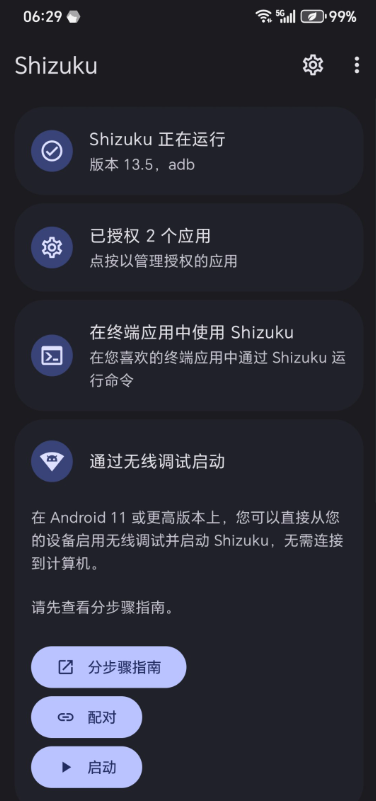 7、这个样子代表shizuku己经启动成功了。