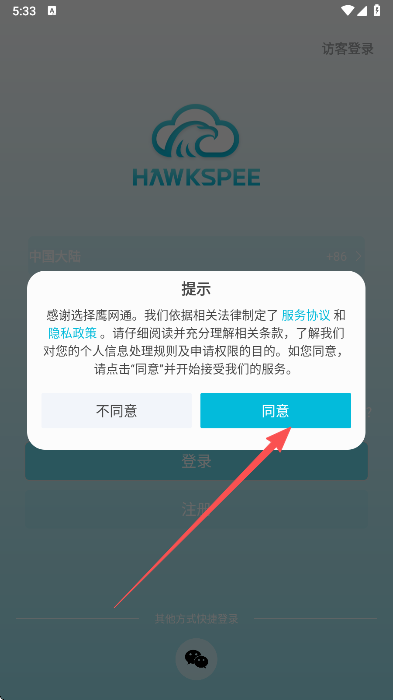 1、在本站下载安装鹰网通app打开,输入手机号或者邮箱注册登录
