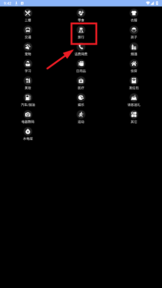 6、选择账目类型,比如旅行。