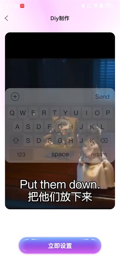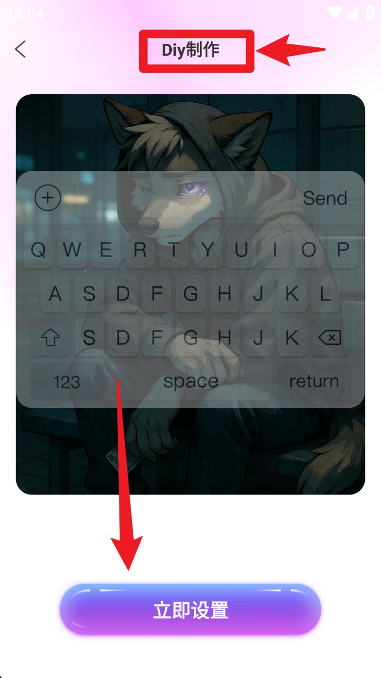 5、在DIY页面完成预览后,同样点击“立即设置”,即可将自定义皮肤设置为当前键盘样式。