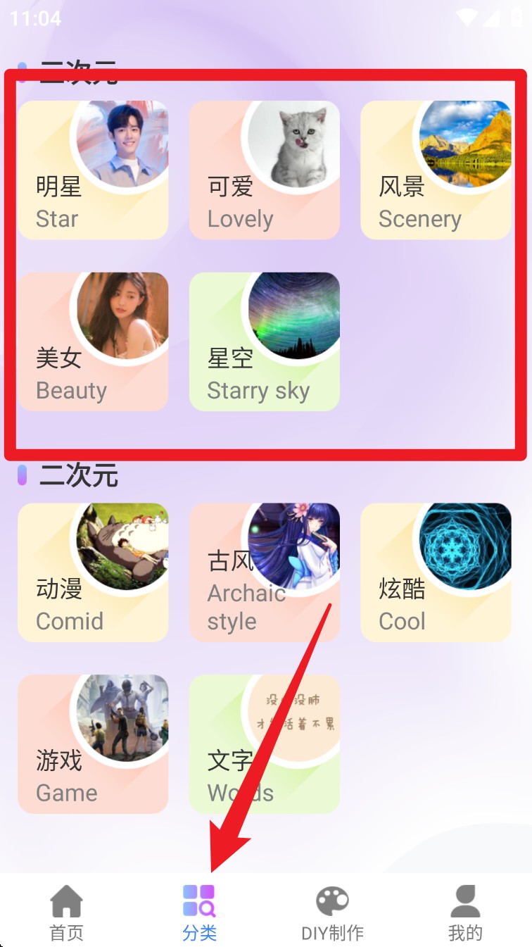 3、若想从不同类型中挑选,可以点击底部导航栏的“分类”,进入风格分类页面浏览更多风格。