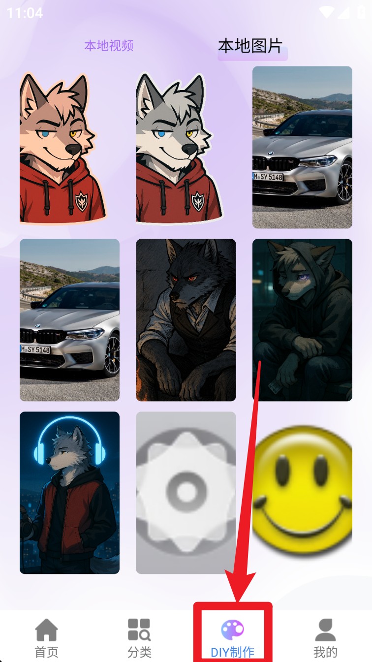 4、想使用自己的图片制作键盘皮肤时,可点击底部导航“DIY制作”,选择本地图片进行编辑设置。