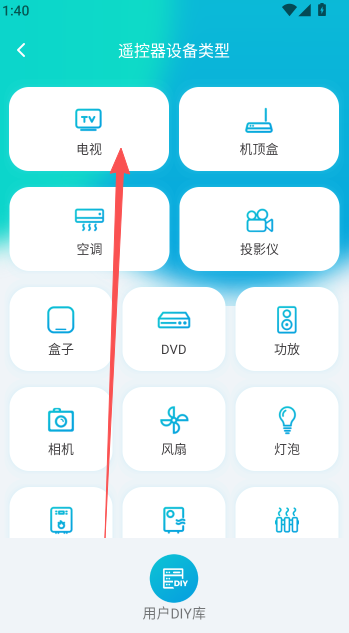 1)打开APP,点击或者左上角按钮;进入“遥控页面选择家电类型,然后再器设备类型”选择家电品牌