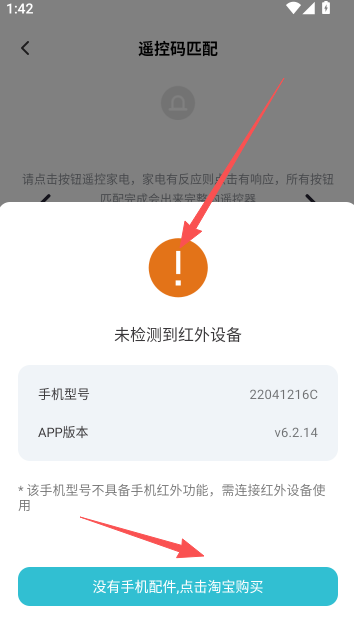 4、APP的设备添加需要连接红外设备,如果没有的话建议先在淘宝官方商城内购买。