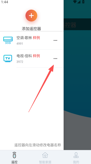 2、在已经添加的遥控设备中,点击后方的三点图标。