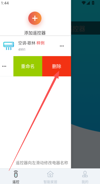 匹配成功后,APP会自动保存遥控器。向左滑动或长按该遥控器名称可以修改遥控器名称或者删除遥控器