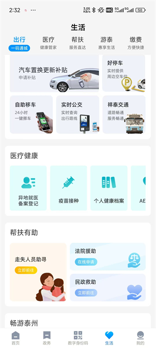 “泰州通”App是专为泰州居民打造的一款政务生活服务App,是泰州市智慧城市移动门户。它提供社会保障、生活服务、医疗健康、文化教育、政务服务、交通出行、住房服务、旅游度假等服务模块,让市民足不出户,线上一键办理各类政务生活事宜。