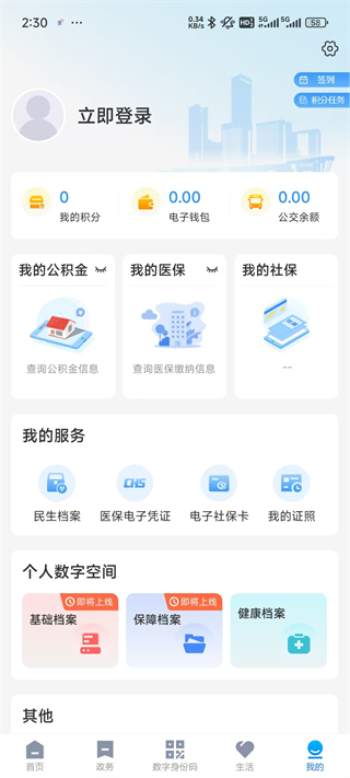 5、点击我的,可以登录app,查看个人服务等