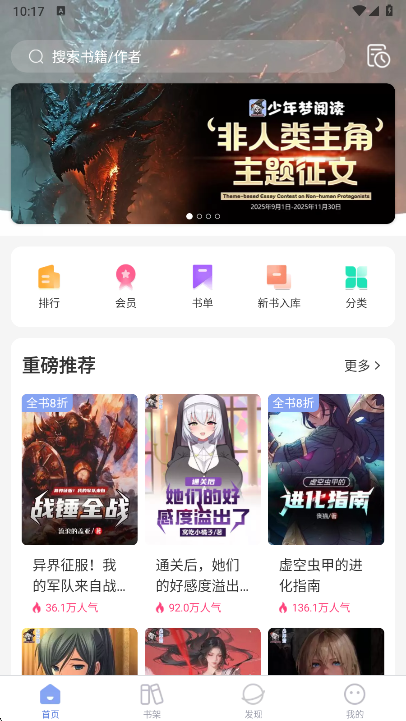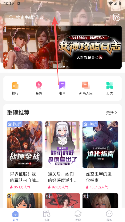 1、咱们直接进入到首页就可以浏览到精选推荐小说了