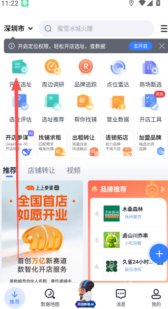 首页查看主要功能:包括开店选址评估、位置推荐、城市查询等核心服务